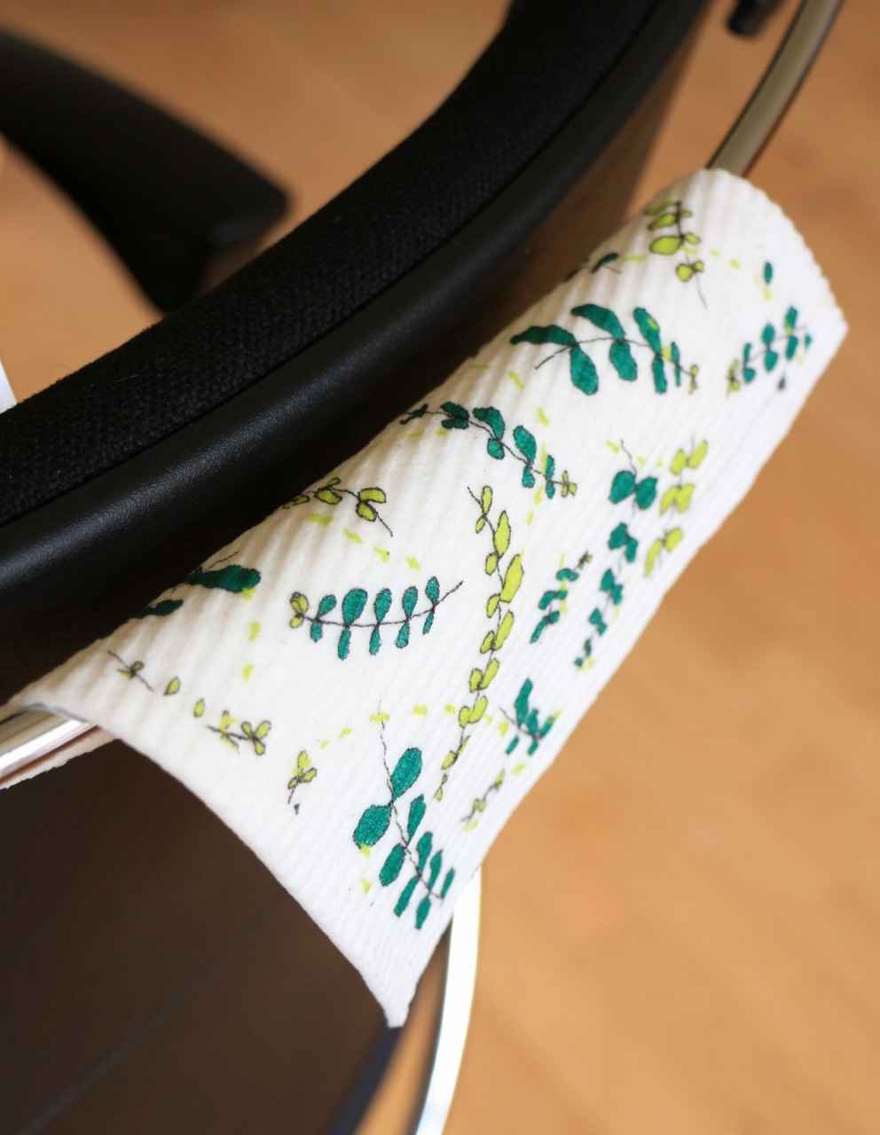 スポンジワイプTrue Colours Design VIRNA・グリーンを椅子にかける